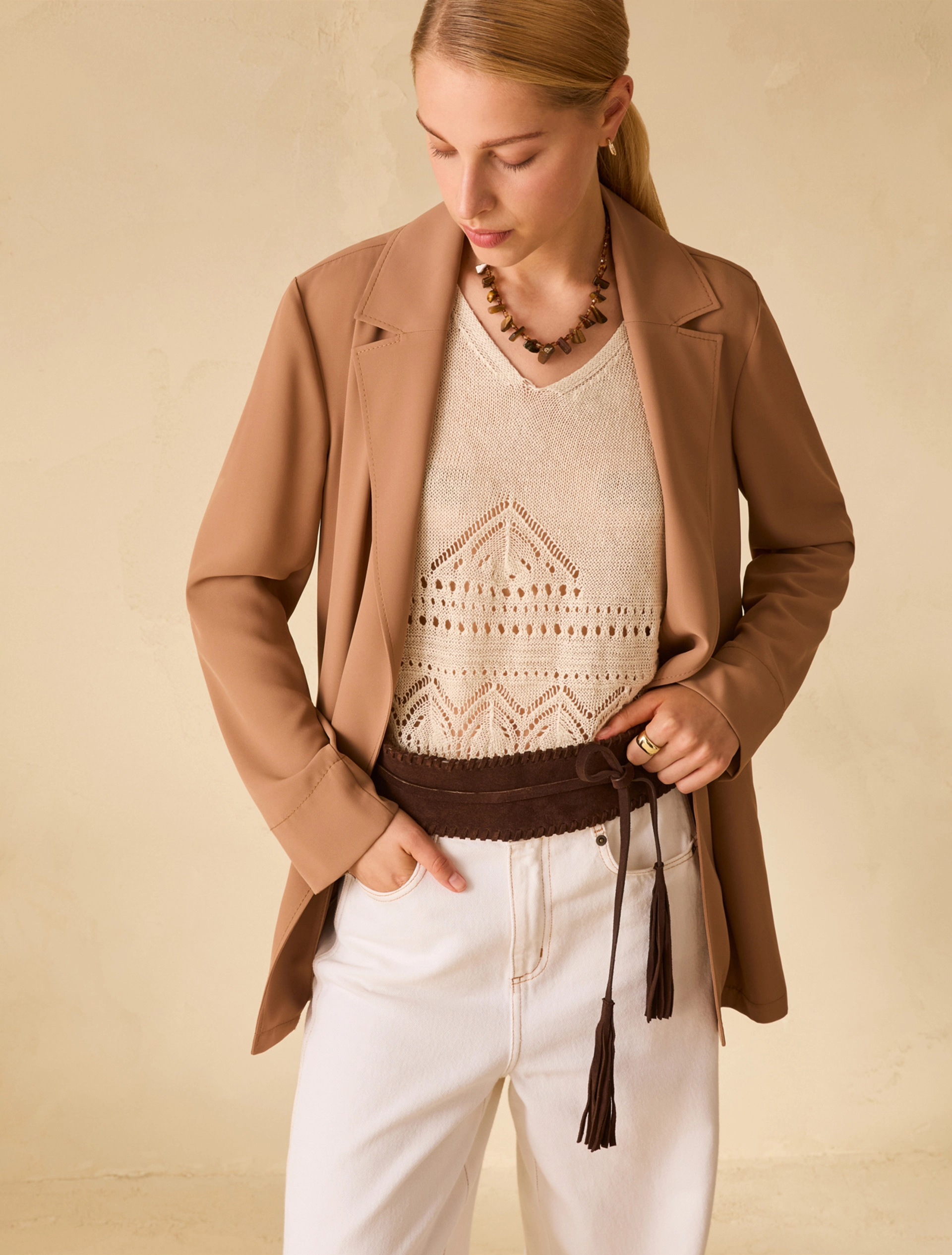 Pulls, vestes et robes sophistiquées révèlent le chic et le naturel tant recherché des femmes actives.
